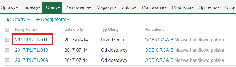 | 1. | Data oferty | NIE | Data wybierana jest przez użytkownika przed użyciem opcji kopiowania |