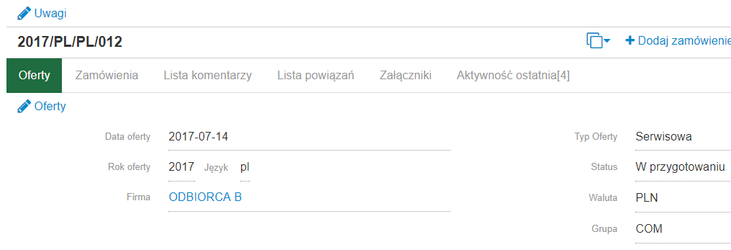 | 13. | Kurs i data kursu | NIE | Podczas kopiowania, gdy waluta jest obca, ustawia się na dzień przed datą oferty |