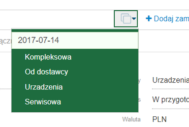 | 3. | Wybranie odpowiedniej daty oferty (domyślnie jest ustawiona data bieżąca) Kliknięcie w typ oferty powoduje wystawienie nowej oferty tego typu, której część pól jest skopiowana z oferty źródłowej. Użytkownik zostaje automatycznie przekierowany do nowo utworzonej oferty. |